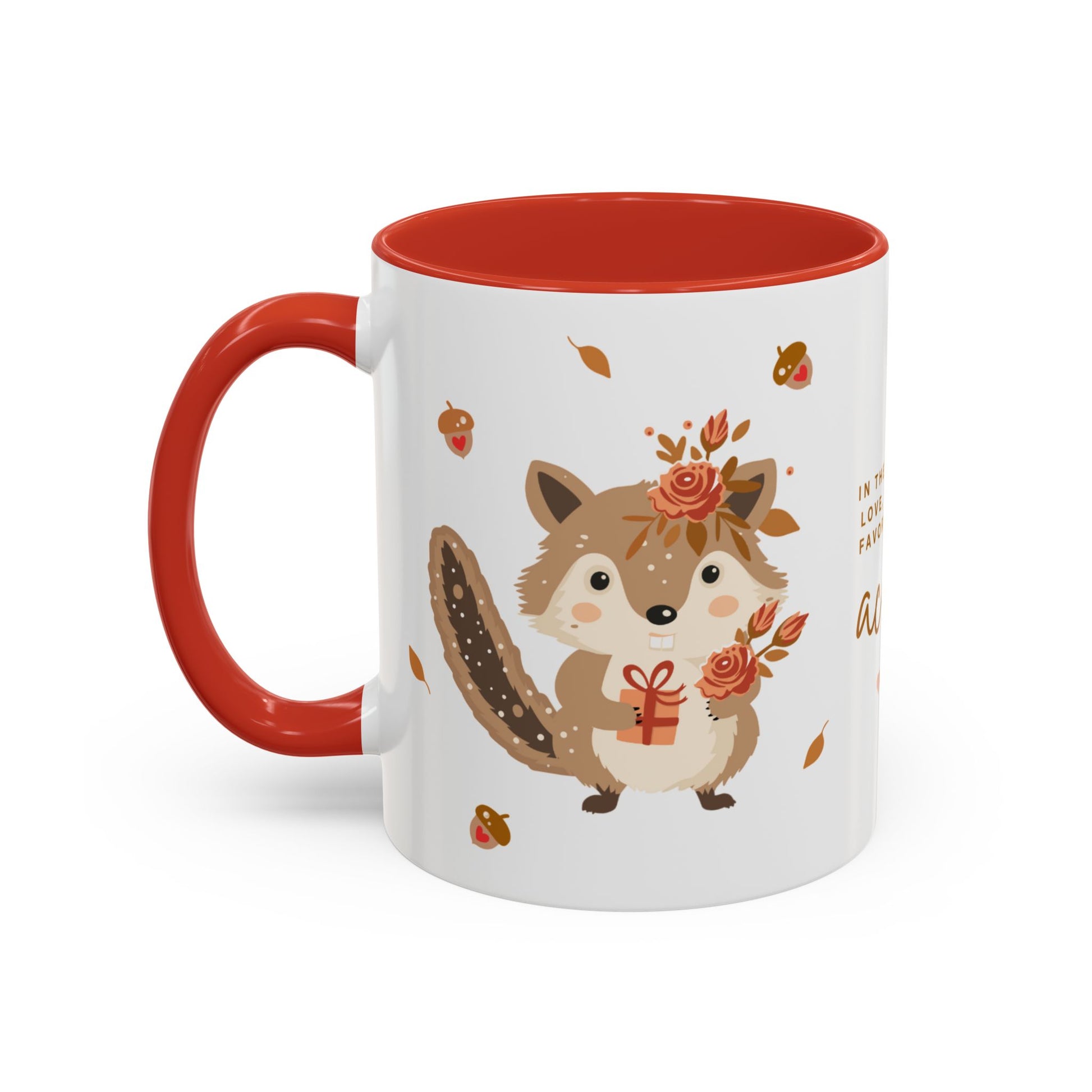 Deze lieve Valentijnsmok met een schattige eekhoorn, herfstbloemen en de romantische tekst “In the forest of love, you’re my favorite little acorn” is een echte hartveroveraar. Een mok die warmte, liefde en een tikkeltje bosmagie uitstraalt. Perfect voor een cozy koffiemoment, een rustige thee in de ochtend of als betekenisvol cadeau voor iemand die je dierbaar is.