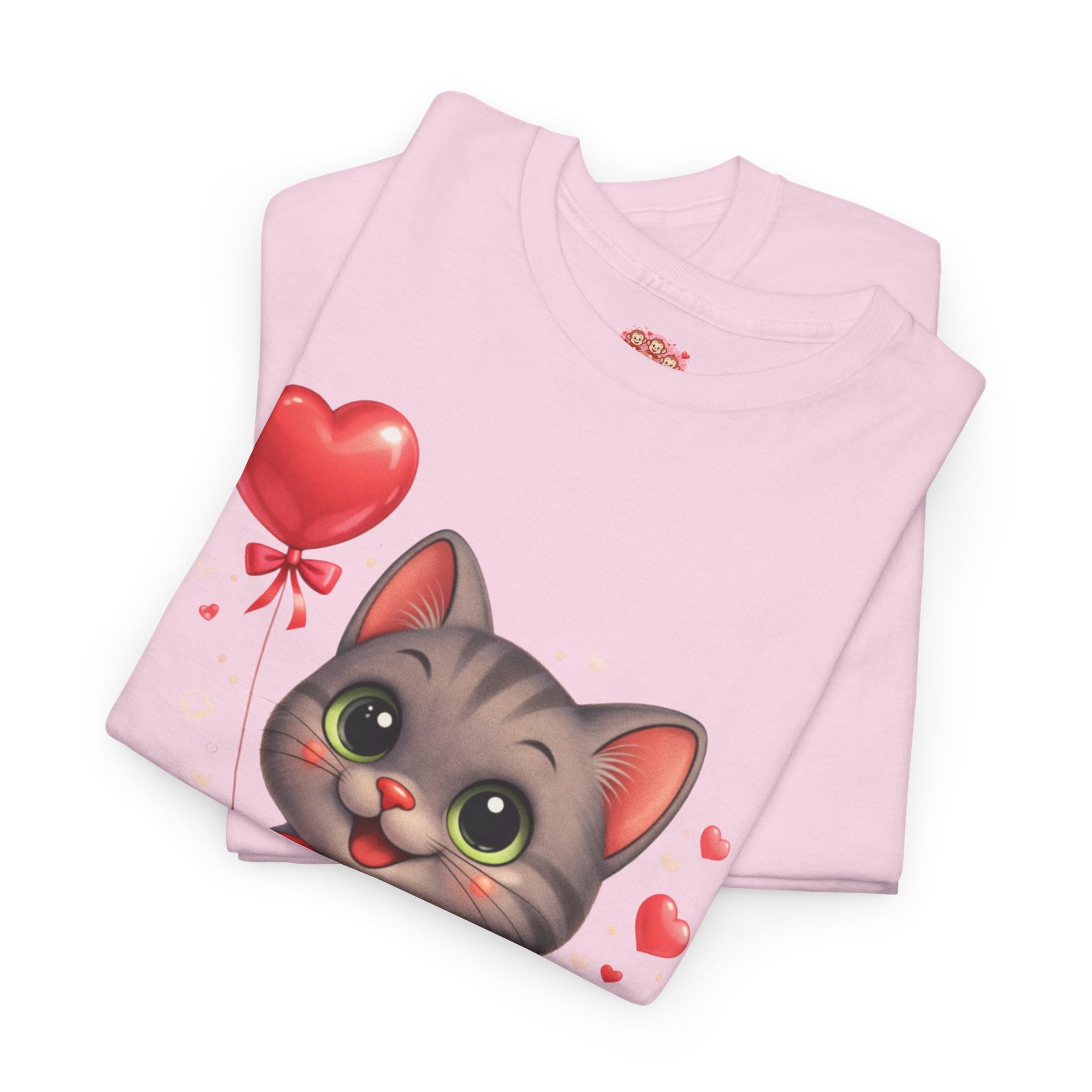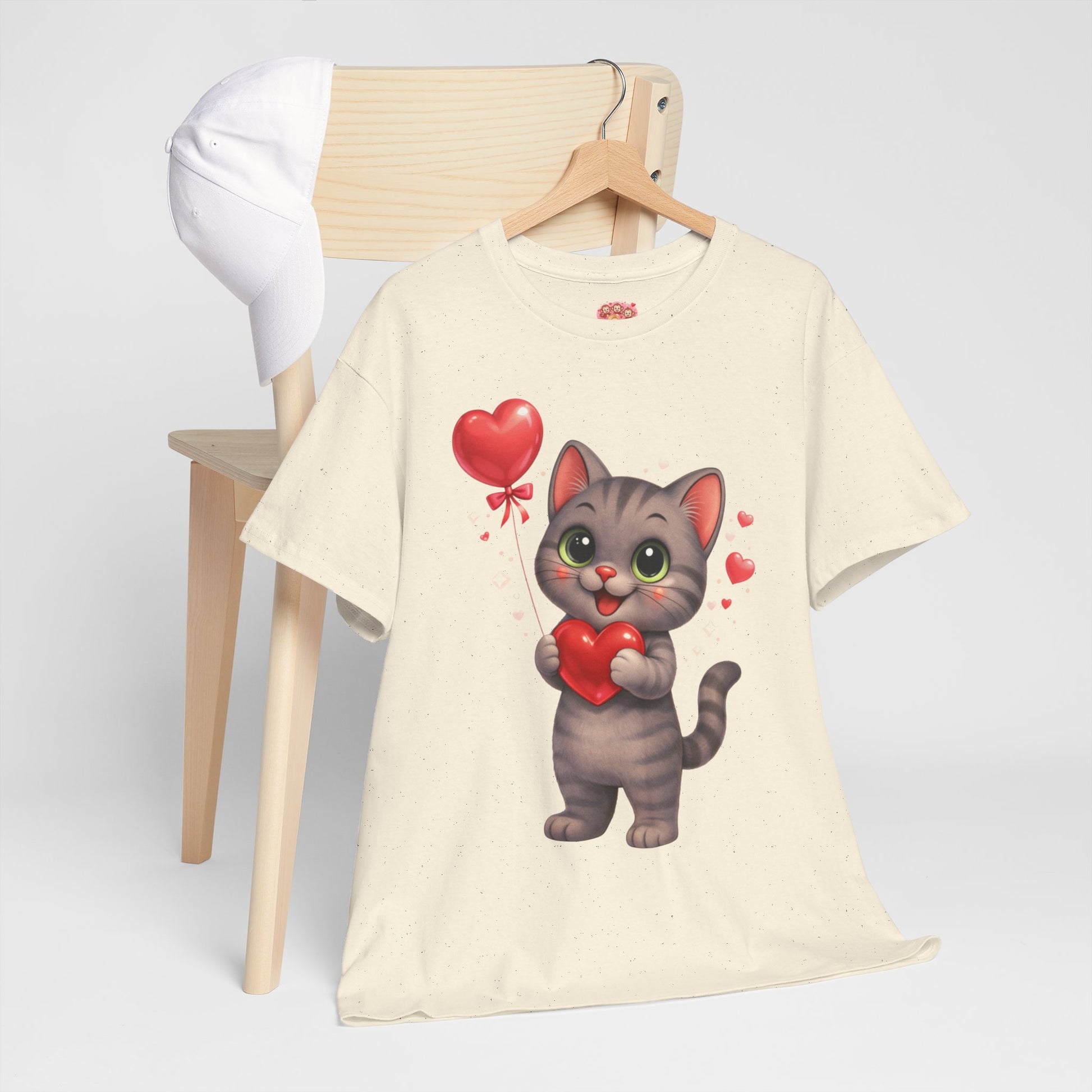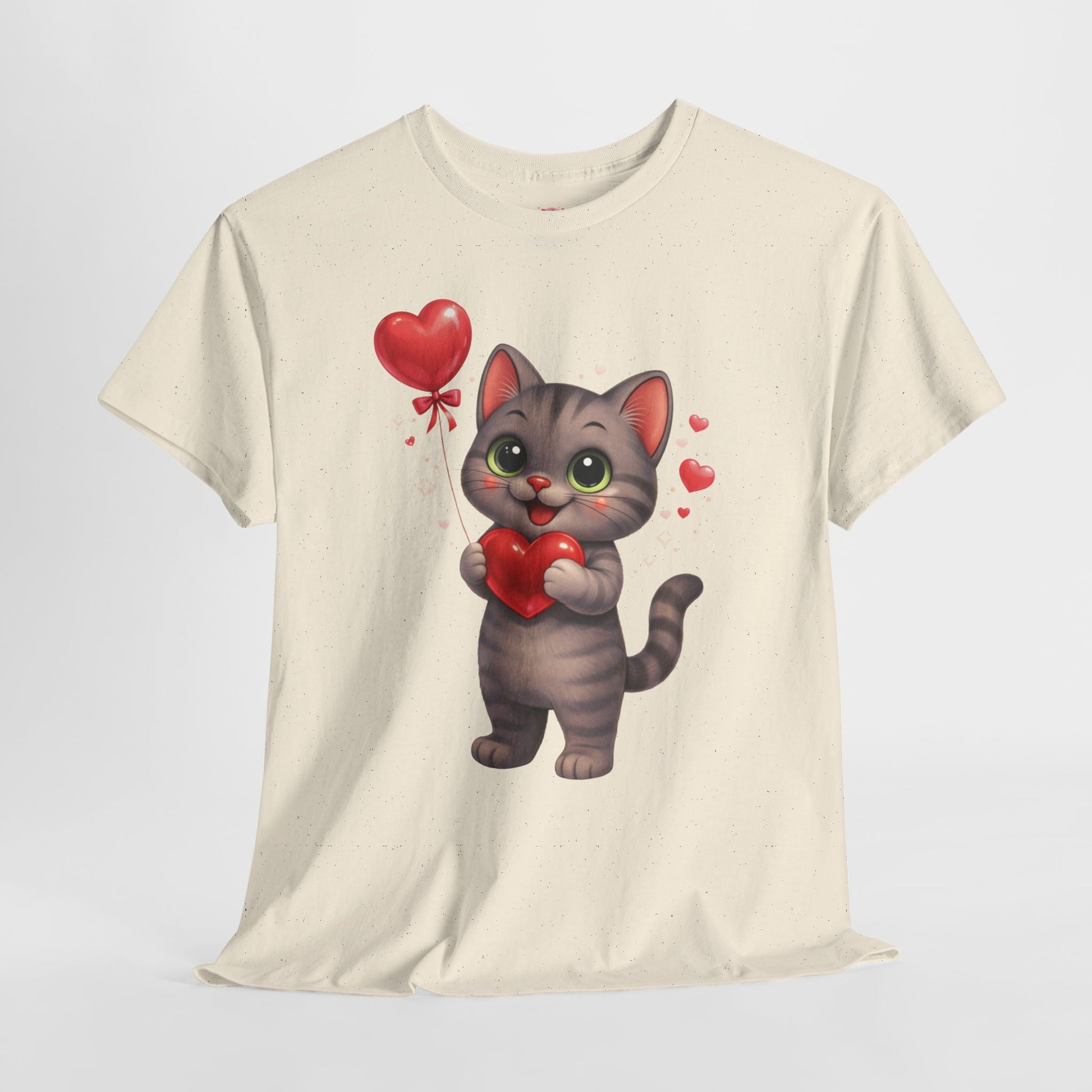 Shelby, de lieve kat met grote ogen, een hartje in haar pootjes en een zwevende ballon, zorgt voor een warme, schattige en romantische uitstraling zonder overdreven te zijn.
