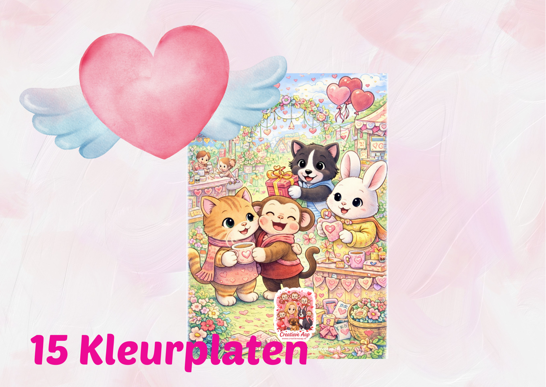 Dit liefdevolle Valentijnsdag kleurboek staat helemaal in het teken van warmte, vriendschap en gezelligheid. De schattige Creatieve Aap-karakters β waaronder Nikita, Shelby, Maggie en de aapjes β komen samen in hartverwarmende ValentijnsscΓ¨nes vol cadeautjes, knuffels, bloemen en cozy momenten.