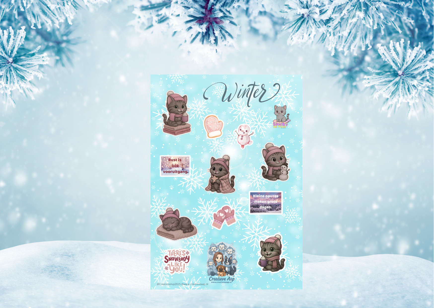 Maak je winterplanning extra warm, knus en magisch met de Shelby Winter Collectie. Deze stickersheet zit boordevol unieke illustraties van jouw eigen karakter Shelby, helemaal in winterstijl: warme muts, sneeuwpop, cozy dekentje, kleine pauzes en hartverwarmende winterquotes.